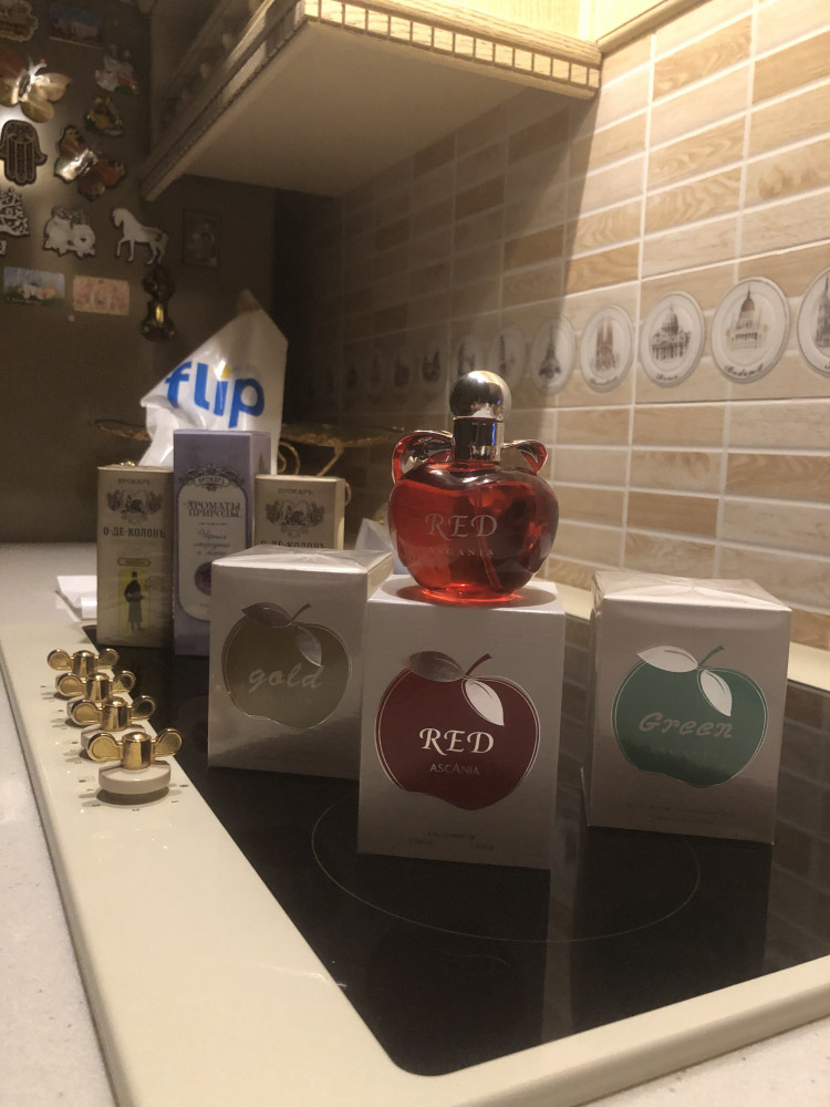 Запах с хорошей кислинкой, мне он сладким не кажется. Цвет самого яблочка немного с толку сбивает. У него акцент именно на лимон и зелёное кислое яблочко .Пока не поняла насколько запах мне нравится. Стойкость на коже (лично на мне) слабоватая, а вот шарфик продержал аромат 6 часов. За такую стоимость он вполне хорош.