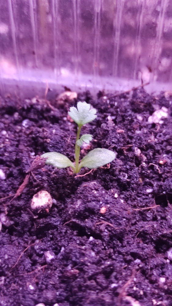 Хоть я и читала отзывы, но очень мне хотелось самой попробовать. Взошло 1 зёрнышко. Растет медленно, но растет. И это радует :))