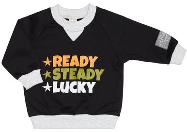 Толстовка понравилась, мягкая, тепленькая. Ткань с начесом, цвет темно серый ближе к черному. Фасон свободный, подойдет для малышей разной комплектации. Принт нанесен качественно, после стирки не облез. Идет в размер. Рукава на трикотажных манжетах
