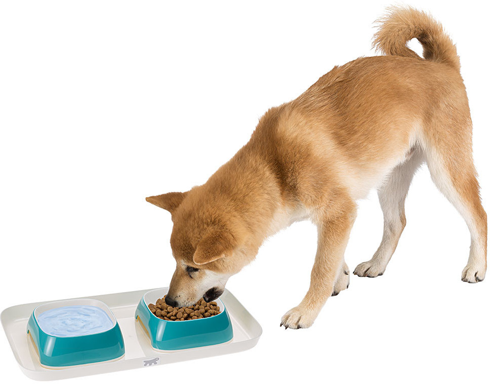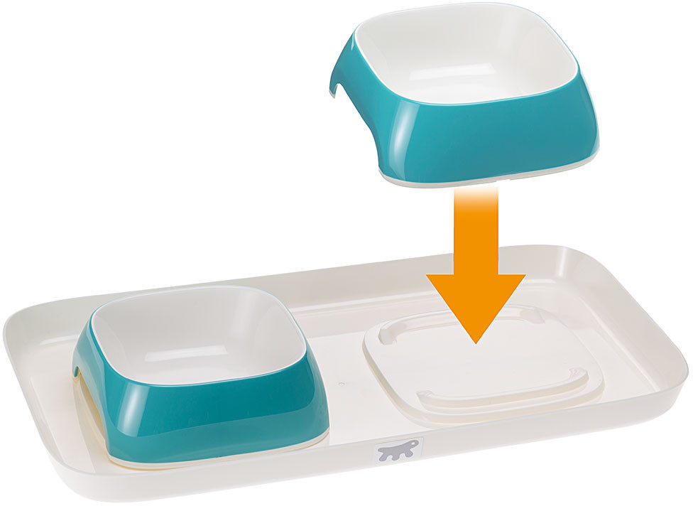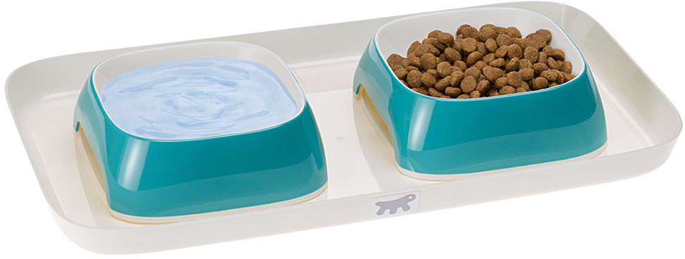 Благодаря подносу с мисками для еды и воды место приема пищи кошек и собак можно сделать аккуратным и эстетически привлекательным. Материал — современный прочный пластик, благодаря которому внешне миски имеют фактуру глазированной керамики.