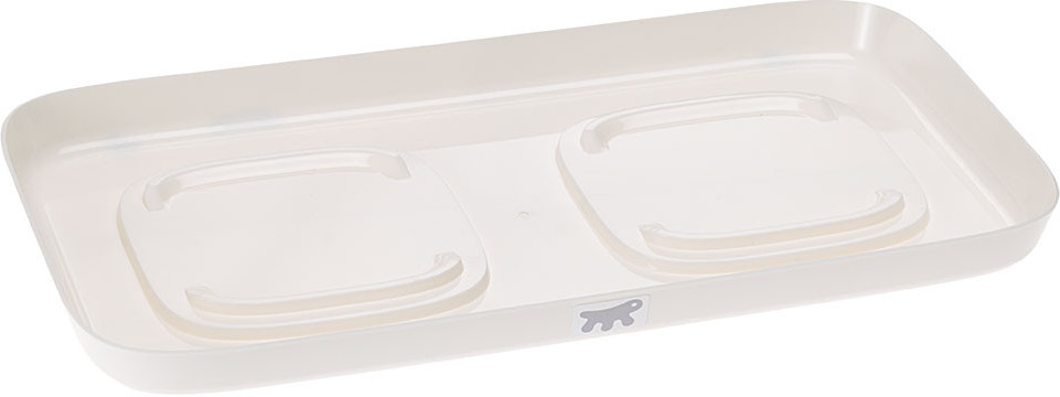 Конструктивное решение расположить миски на подносе сделает место приема пищи аккуратным, так как уборка будет сводиться к мытью поддона и мисок без необходимости мыть пол. Пластиковый поднос имеет небольшие бортики, чтобы еда или вода не проливались на пол. Снизу антискользящие ножки не позволят подносу двигаться по полу во время еды питомца. А специальные опоры сделаны для того, чтобы по нему не скользили миски.