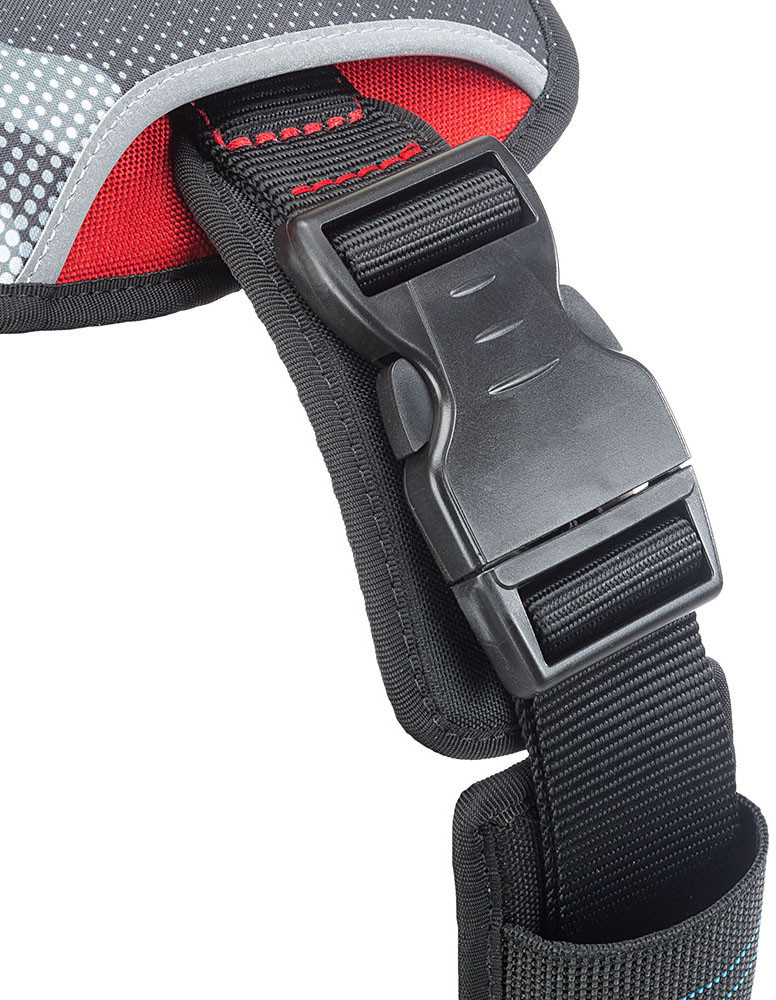 Регулировка посадки аксессуара осуществляется ползунком в нижней части. Застегивается шлейка клипсой из техно-пластика, который отличает высокая прочность, поэтому она выдерживает сильное натяжение. Шлейка выполнена по так называемой Quick fit технологии, что дает возможность аксессуар быстро надевать, снимать и подгонять по размеру.