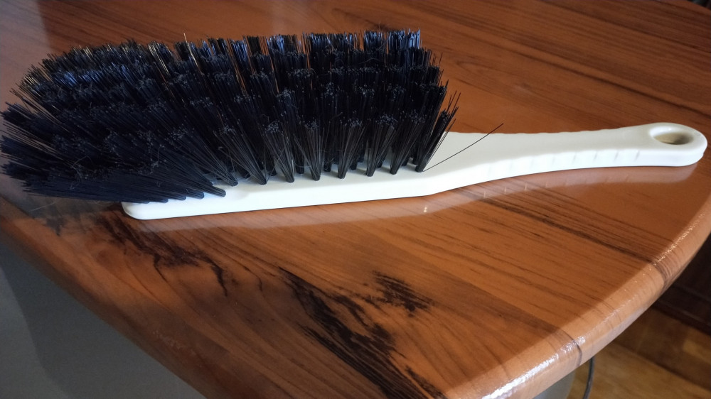 Щетка большая, удобно держать в руках, щетинка в меру жесткая и густая, легко моется, не тяжелая, такую искала, спасибо. В магазинах таких не видела, в основном продаю маленькие и средние.