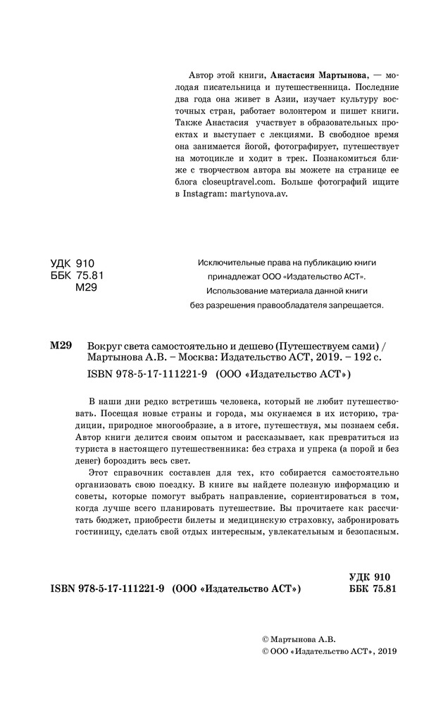 💳 Оплатить за товар можно при получении 🇰🇿 Есть бесплатная доставка по Казахстану от 1 дня 🎁 Копите бонусы с каждой покупки Серия: Путешествуем сами В наши дни редко встретишь человека, который не любит путешествовать. Посещая новые страны и города, мы окунаемся в их историю, традиции, природное многообразие, а в итоге, путешествуя, мы познаем себя. Этот справочник составлен опытным путешественником для тех, кто собирается самостоятельно организовать свою поездку. В книге вы найдете полезную информацию и советы, которые помогут выбрать направление, сориентироваться в том, когда лучше всего планировать путешествие, рассчитать бюджет, приобрести билеты и страховку, забронировать гостиницу, сделать свой отдых интересным, увлекательным и безопасным. |