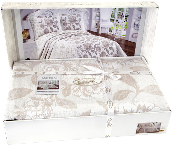 Karna Покрывало «Jardin» (2-спальное, 240×260 см, 2 наволочки 50×70)В данный момент этот товар отсутствует в продаже. Возможно, у нас найдется аналогичный или похожий товар здесь. Серия: Jardin Роскошное жаккардовое покрывало не только украсит кровать и интерьер в целом, но и подчеркнет изысканный вкус владельца. |