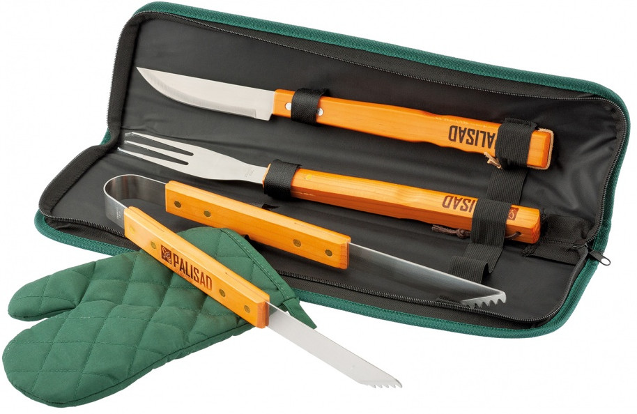 Аксессуары изготовлены из пищевой нержавеющей стали. Эргономичная деревянная рукоятка не нагревается и удобна в процессе использования. Компактная сумка идеально подходит для хранения и транспортировки. |