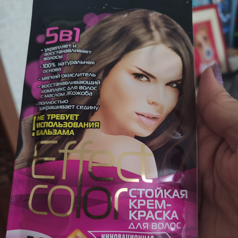 Краска хорошая, мне очень понравилась. Брала тон 5.0 темно-русый, держала 50 минут. Лучше закрасила мои седые волосы чем fito color и Henna. Краска абсолютно без запаха и не щиплет голову. Рекомендую