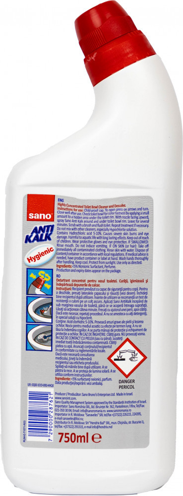 Sano Средство очищающее для мытья унитаза «Anti Kalk WC»-15% +107 хорошо очищает придаёт блеск приятный аромат