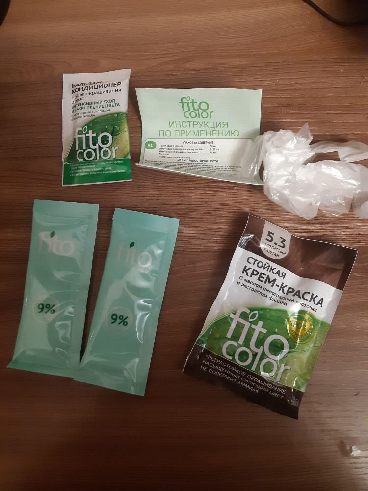 Стойкая крем-краска для волос (цвет темный каштан) Fitocolor Краска не имеет неприятного характерного для всех красок запаха. Полученный состав густой. По волосам распределяется легко. Краска не течет. С кожи (при случайном попадании) легко смывается. Во время воздействия не было никакого дискомфорта. Не жжёт, кожа головы не чешется. Аллергии не вызвала, седина хорошо покрасилась, цвет насыщенный. Волосы после применения бальзама блестящие и мягкие. Вся информация указана-состав, меры предосторожности, фирма-производитель, содержимое коробочки, результат окрашивание и рекомендации к нему.