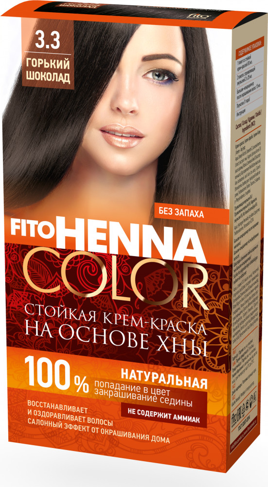 Henna color Крем-краска для волос на основе хны, оттенок 3.3 Горький шоколад