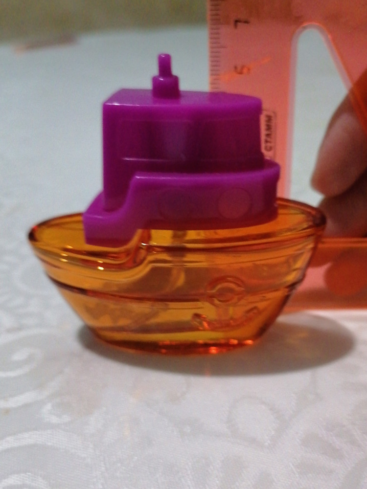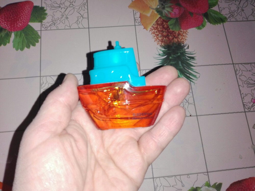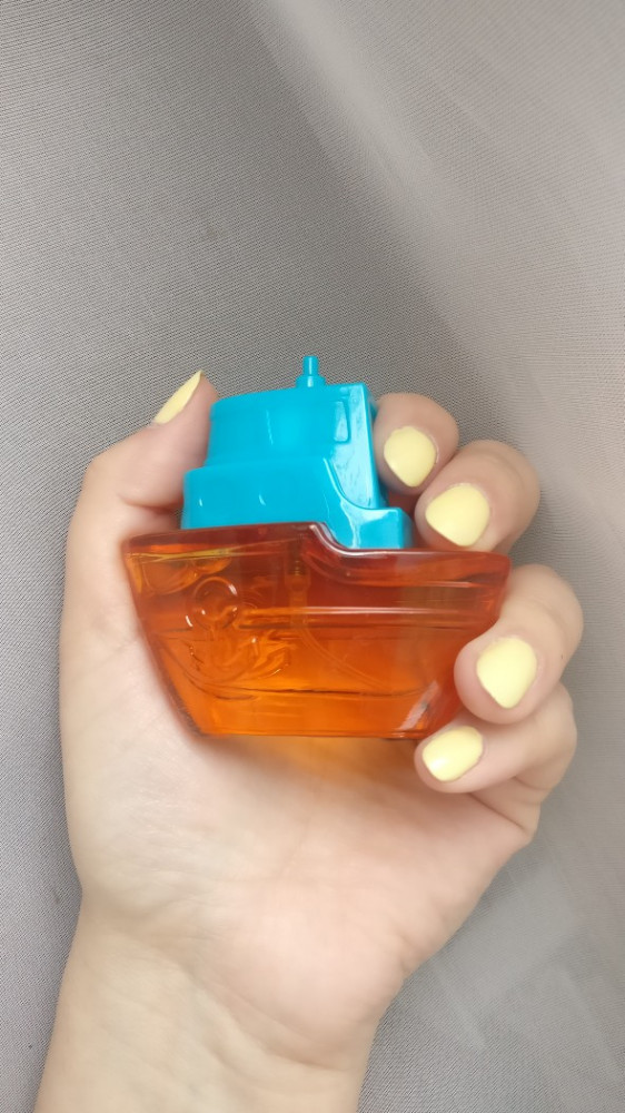 Сладкий карамельно-дюшесный аромат, нестойкий, на часок-полтора, но ребенку же это не важно, ребенок очень доволен, флакончик-кораблик кладет рядом, когда спит, играет с ним, душится перед каждым выходом на улицу. И в подарок просто отлично, и цена замечательная, и вид презентабельный. Спасибо, взяла и буду брать еще.
