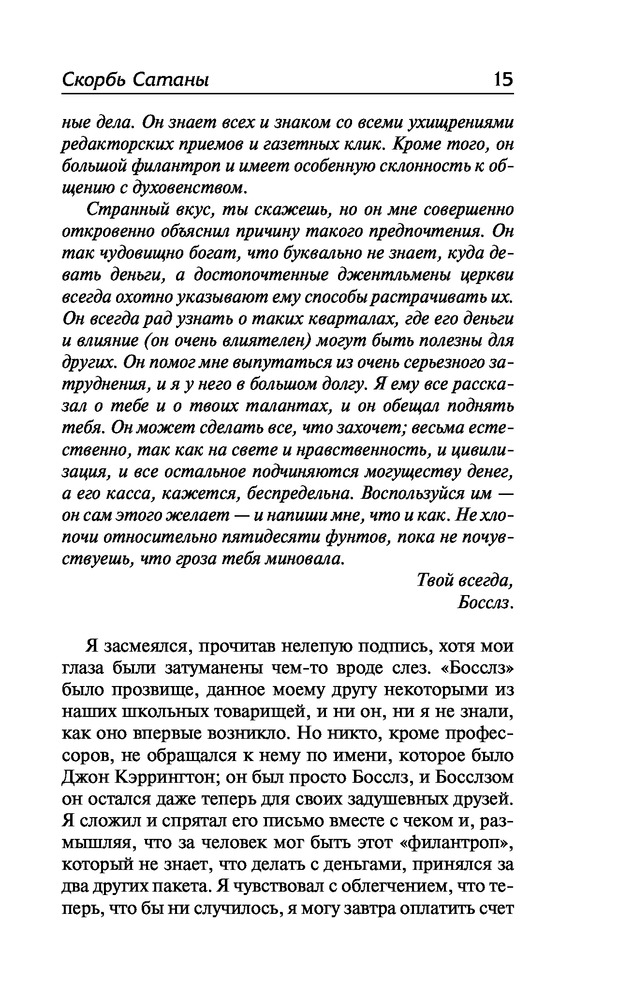 Хотя и указывают среди недостатков бумагу - к содержанию книги это какое может иметь отношение? Если вы ищете классическую английскую литературу, налогичную "Портрету Дориана Грея" - не промахнетесь. Над книгой надо думать, поэтому если хотите подеградировать, то явно не зайдет. Диалогов много и если в голове строить фильм, то экшена не получится. Очень рекомендую к прочтению любителям дискуссий на тему "Бог/Дьявол.