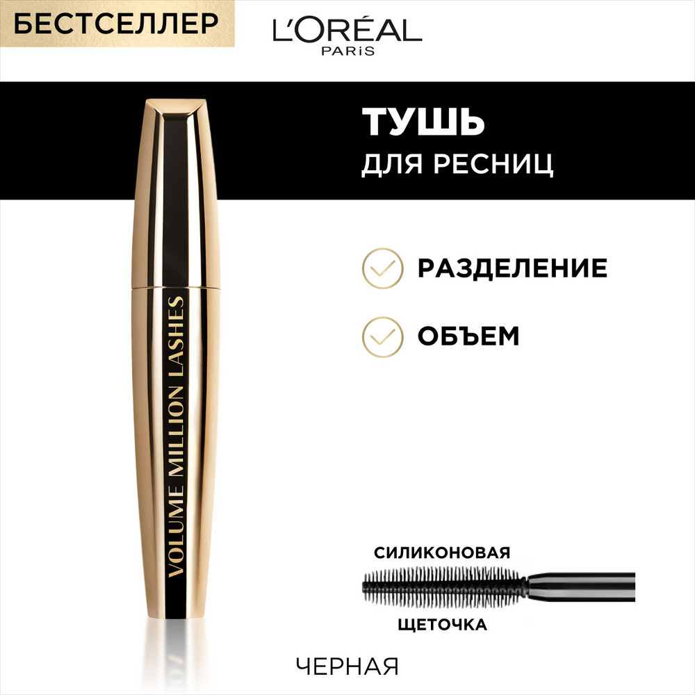 L'Oreal Paris Тушь для ресниц «Volume Million Lashes Gold», оттенок 03 Черный
