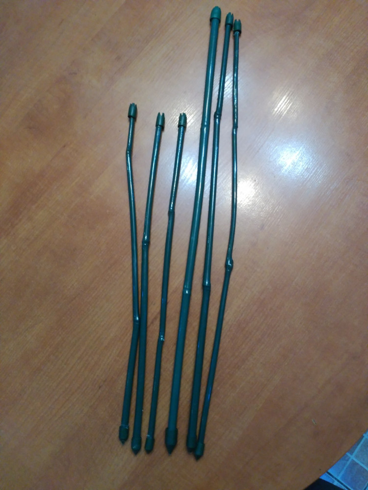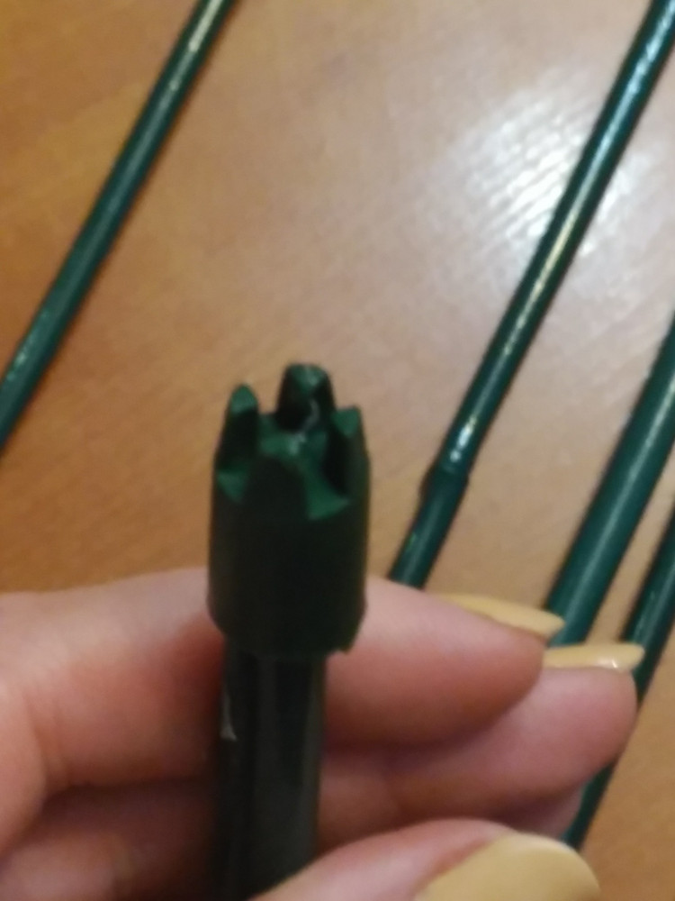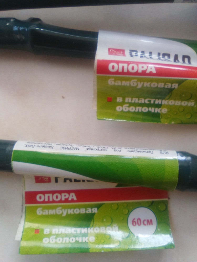 Заказала три 45 см., и три 60 см. Опоры из бамбука покрытые пластиковой плёнкой, довольно прочные не гнутся. Звездочку сняла что разной толщины и кривенькие.