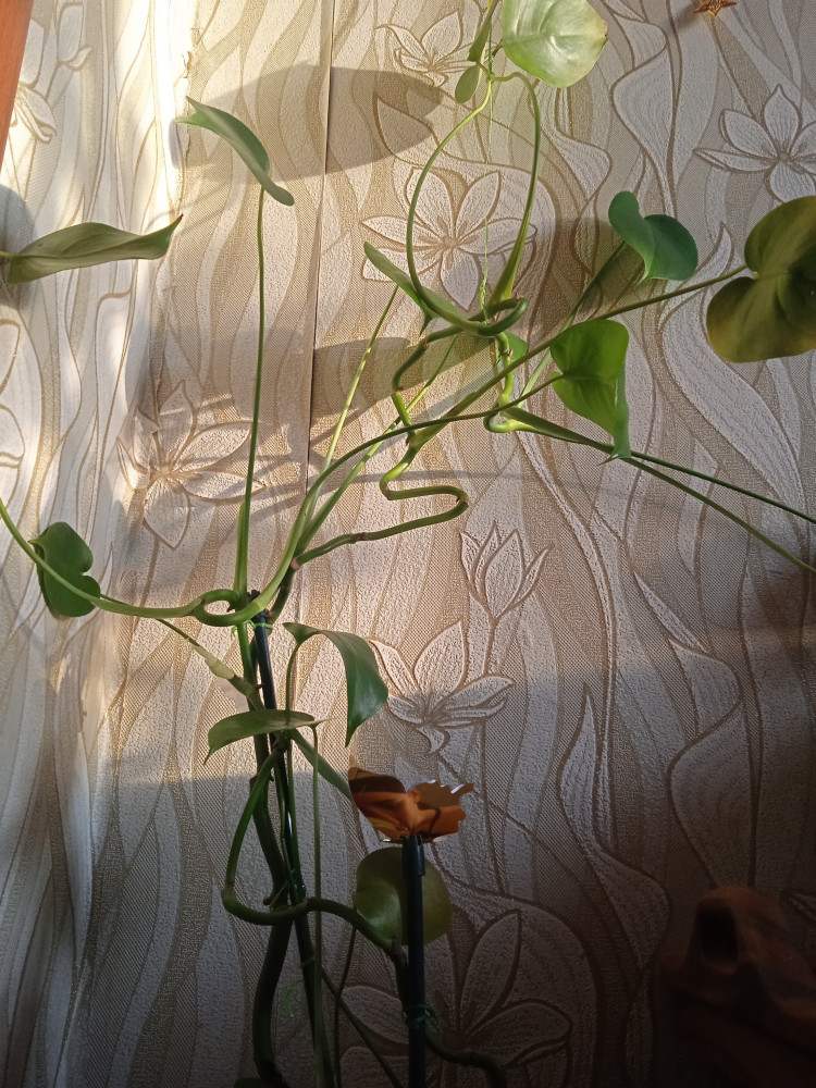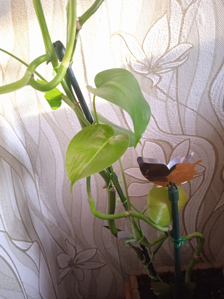 на фото опоры обоих размеров. подвязки (рулон) тоже купила тут за копейки. не знала уже, что делать с этим страшненьким цветком (он был на съемной квартире, когда мы въехали, лежал на полу просто и ломался от прикосновений)