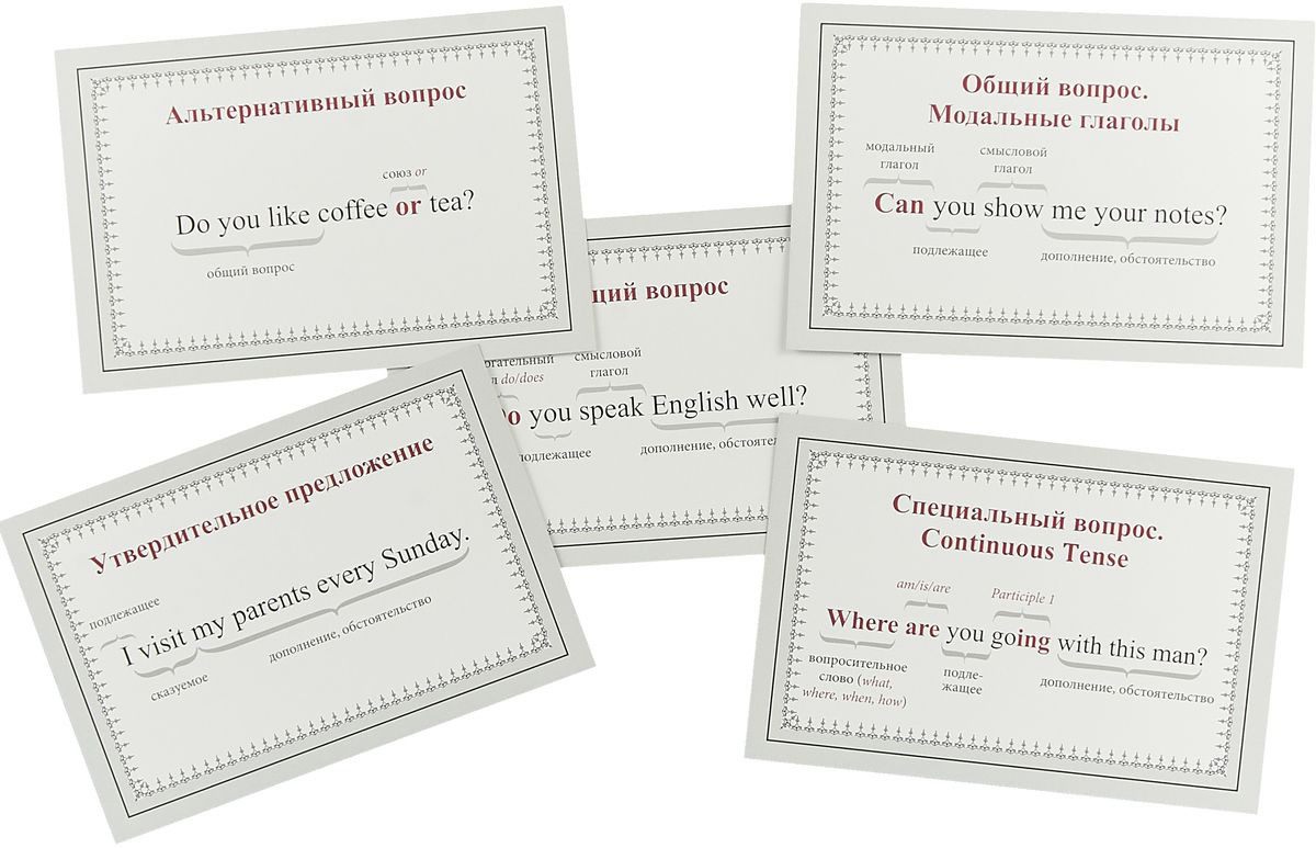 Отзывы «Speak English! Порядок слов в предложении: утверждение, отрицание, восклицание, вопрос (29 карточек)»