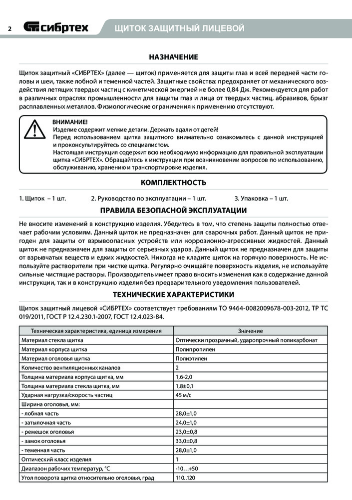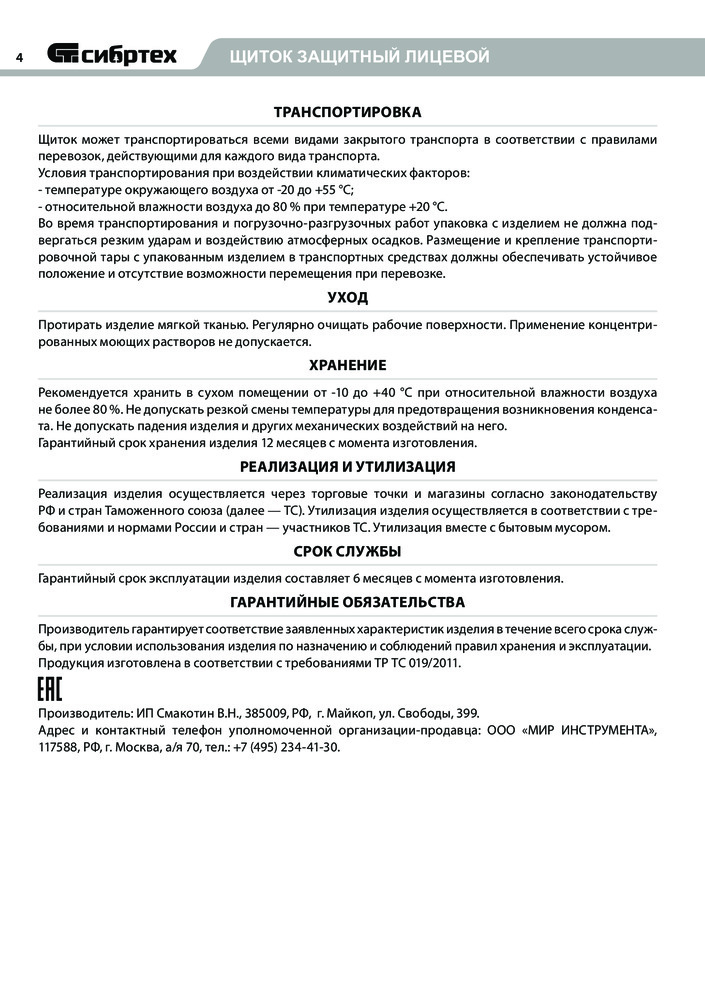 Сибртех Щиток защитный лицевой-20% +82
