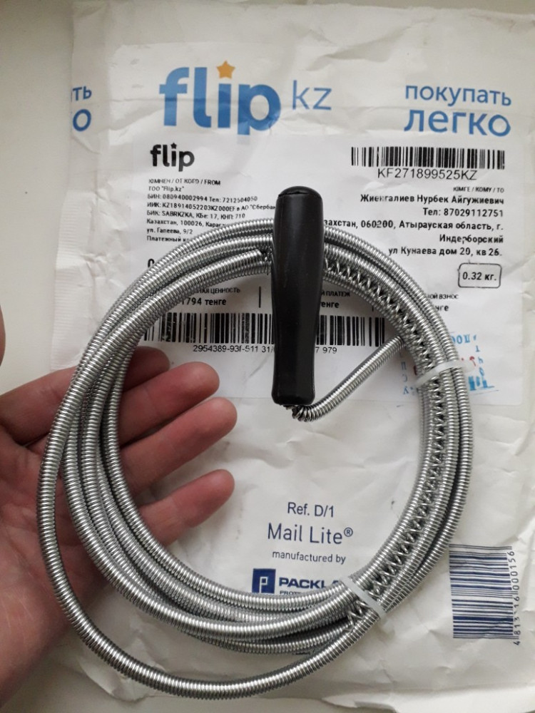 купила такой тонкий в надежде, что им смогу проникнуть во все уголки в системе слива под мойкой. Но не добилась результата.тросик вытащила уже с заломами, значит где-то в трубах он застрял и дальше не проходил, осталось только складываться. Невозможно вращать. Вода, как и прежде, плохо уходит.