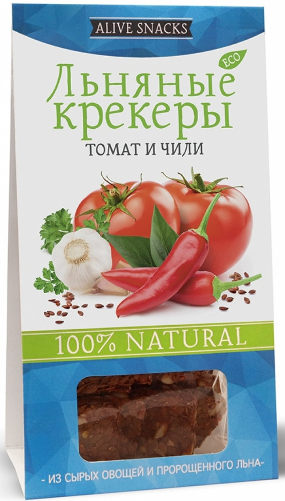 Живые снеки Крекеры льняные «Томат и чили»