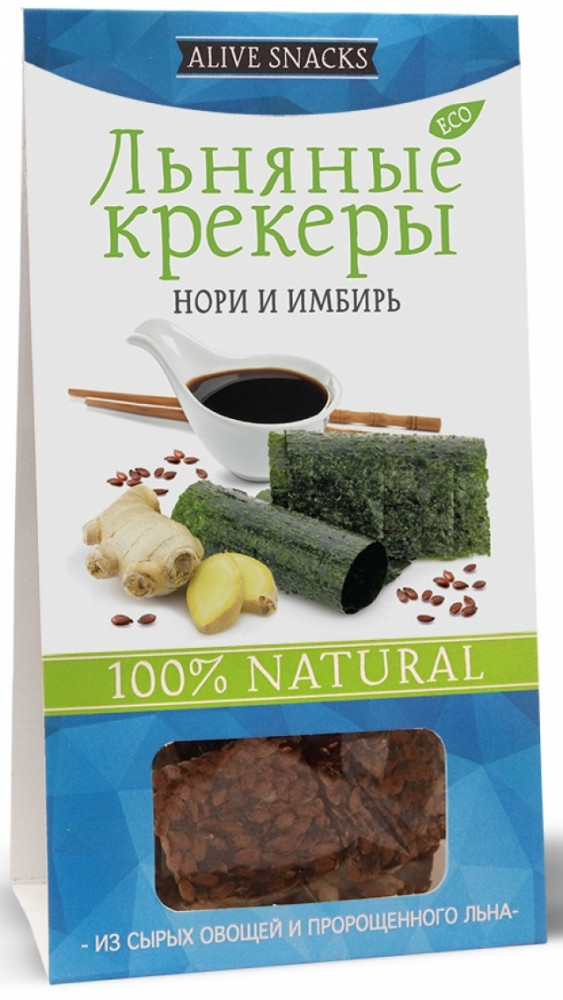 Живые снеки Крекеры льняные «Нори и имбирь»