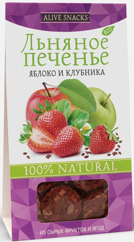Живые снеки Печенье льняное «Яблоко и клубника»