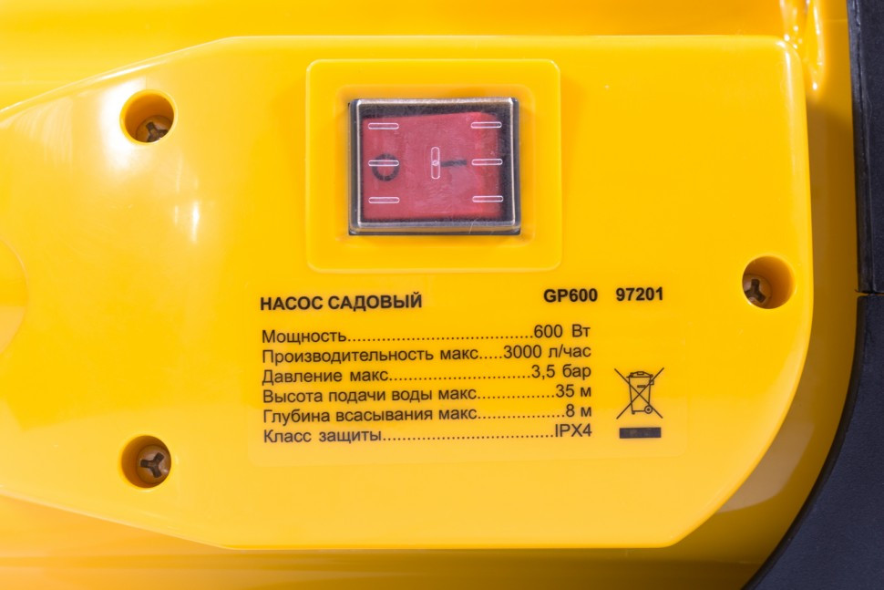 Бытовой садовый насос GP600 торговой марки Denzel предназначен для полива садов, огородов, приусадебных участков, а также для водоснабжения жилых домов и подъема воды на высоту до 35 м. Забор воды насосом возможен из открытых водоемов, колодцев и прочих накопительных емкостей. Максимально возможная глубина опускания всасывающего шланга — не более 8 м, максимальное давление подачи воды — 4,4 бар. |