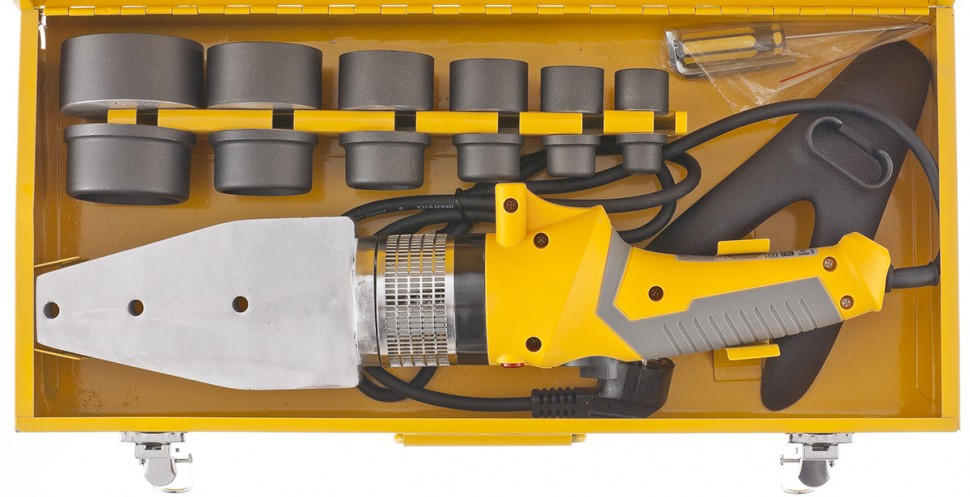 Denzel Аппарат для сварки пластиковых трубкачество удобство дизайн В данный момент этот товар отсутствует в продаже. Возможно, у нас найдется аналогичный или похожий товар здесь. Аппарат для сварки (пайки) пластиковых труб торговой марки Denzel предназначен для прочного соединения труб из полипропилена и полиэтилена в домашних условиях. Технологический процесс заключается в нагреве/размягчении двух монтажных компонентов и соединении их под давлением. Технические возможности аппарата позволяют регулировать температуру нагрева изделий до 260— 300 °С. Применение сменных насадок позволяет соединять трубы диаметром от 20 до 63 мм. Насадки имеют тефлоновое покрытие, предупреждающее налипание пластика к их поверхности. |
