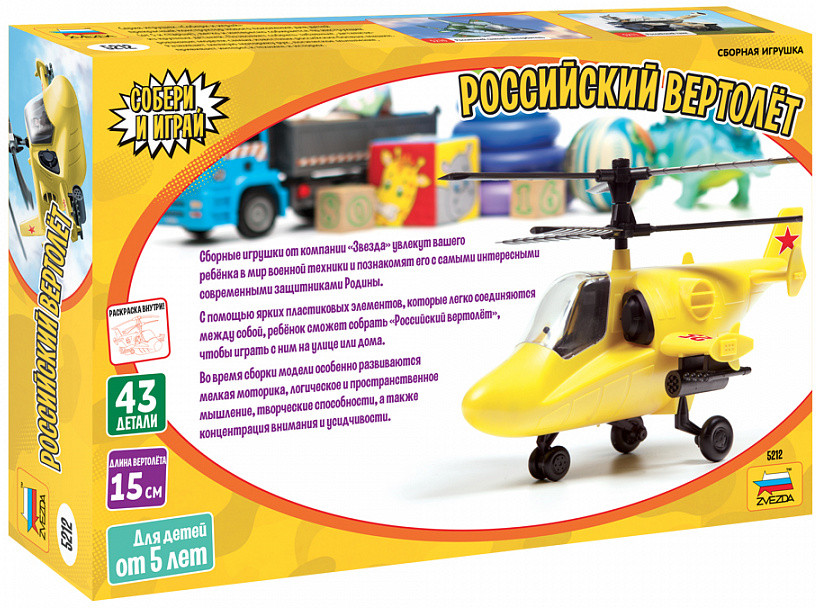 С помощью ярких пластиковых элементов, которые легко соединяются между собой, ребёнок сможет собрать «Российский вертолёт», чтобы играть с ним на улице или дома.