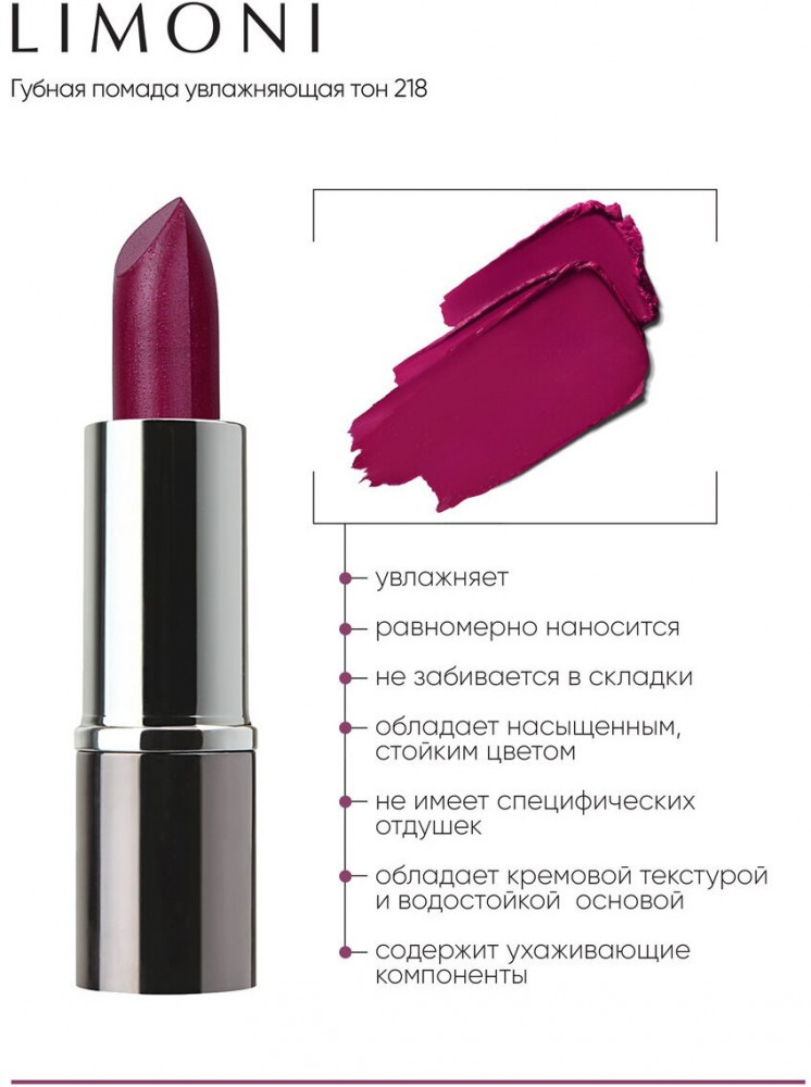 Помада очень хорошая, мягкая, увлажняет, не матовая, но и не слишком блестит, плотная, рекомендую. Цвет, да, немного не тот, что на фото.