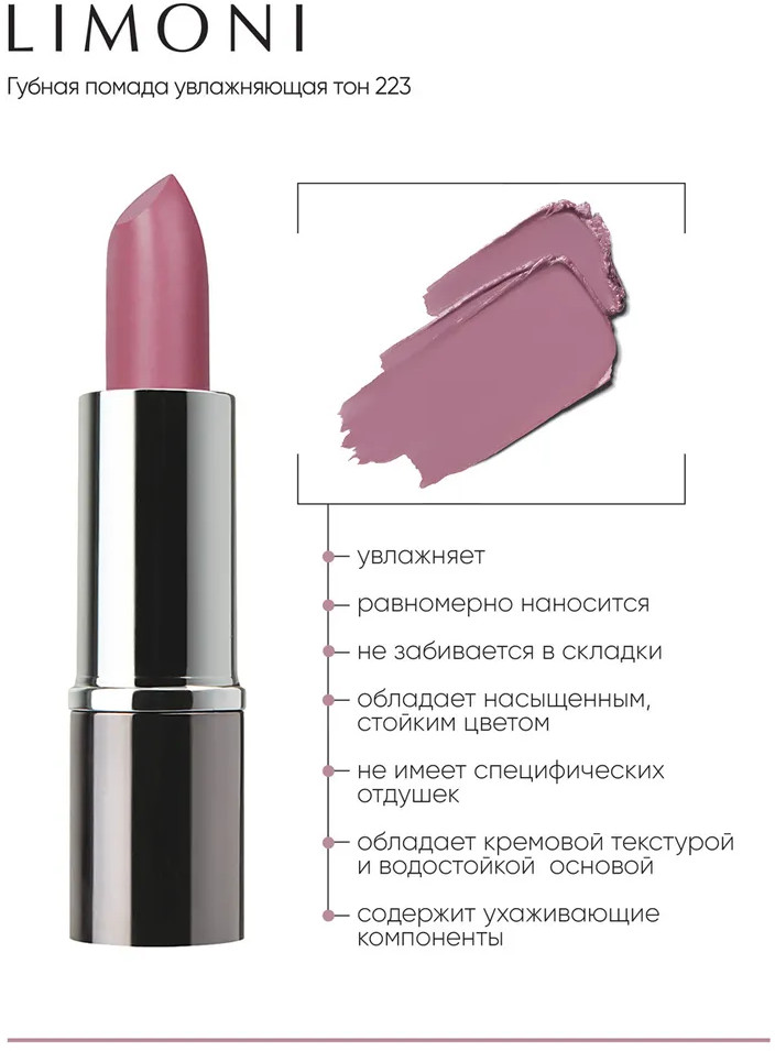 Помада очень хорошая, мягкая, увлажняет, не матовая, но и не слишком блестит, плотная, рекомендую. Цвет, да, немного не тот, что на фото.