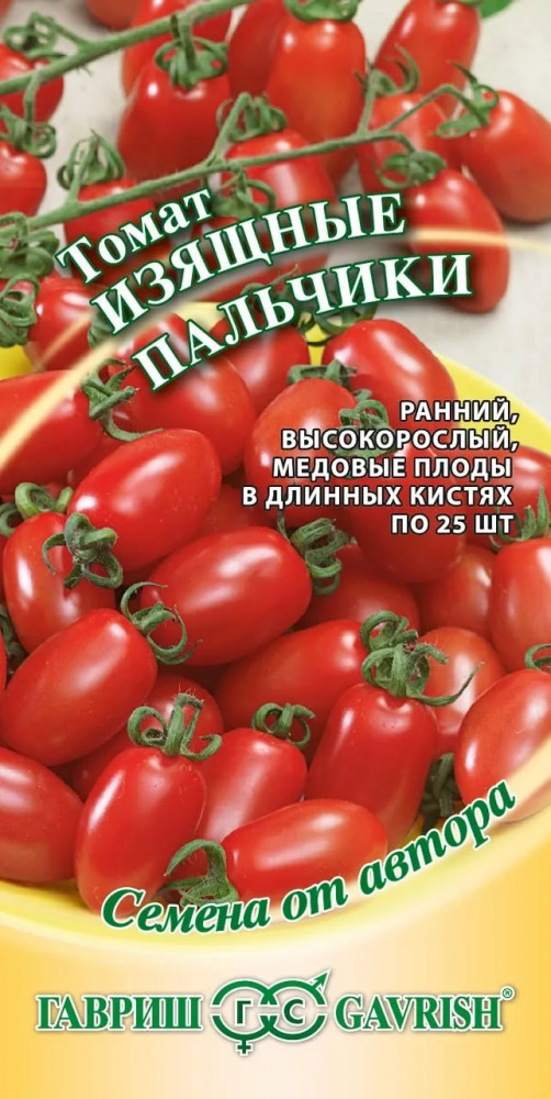 Аэлита Семена. Томат «Изящные пальчики»+20 высокая всхожесть высокорослый плотная мякоть подходит для консервирования мелкий плод неравномерное созревание