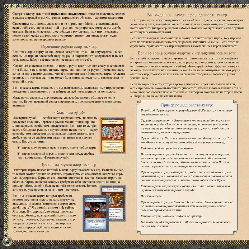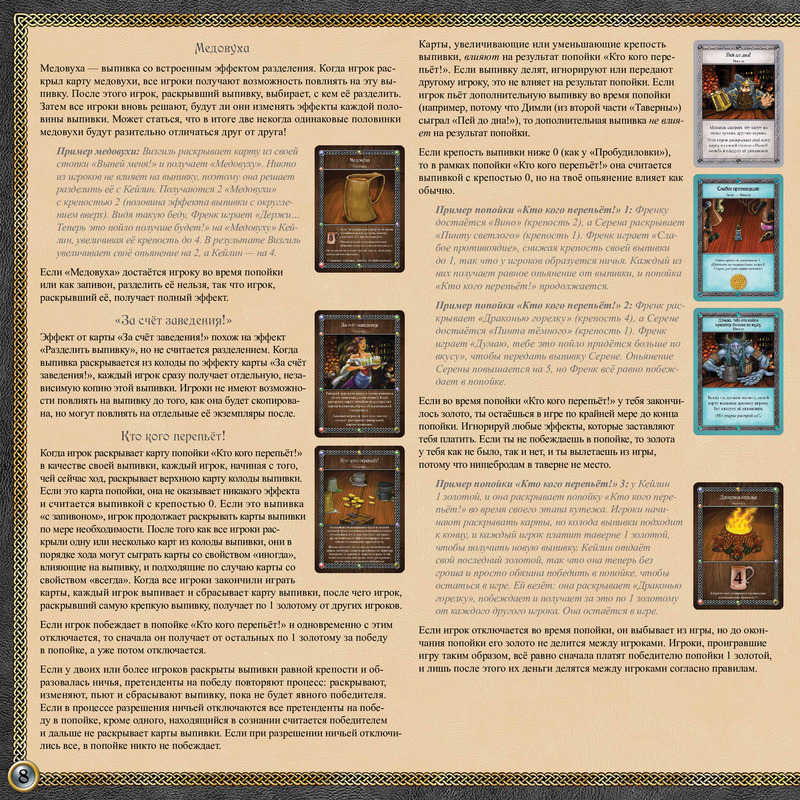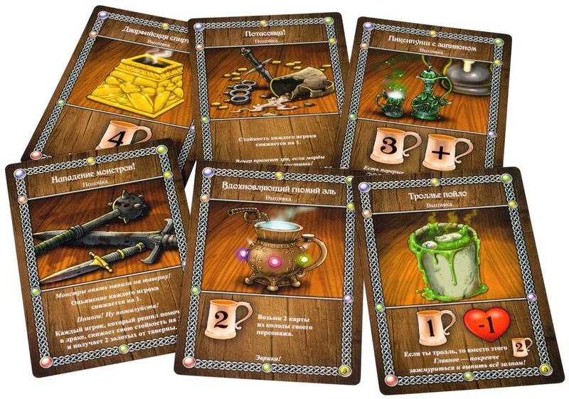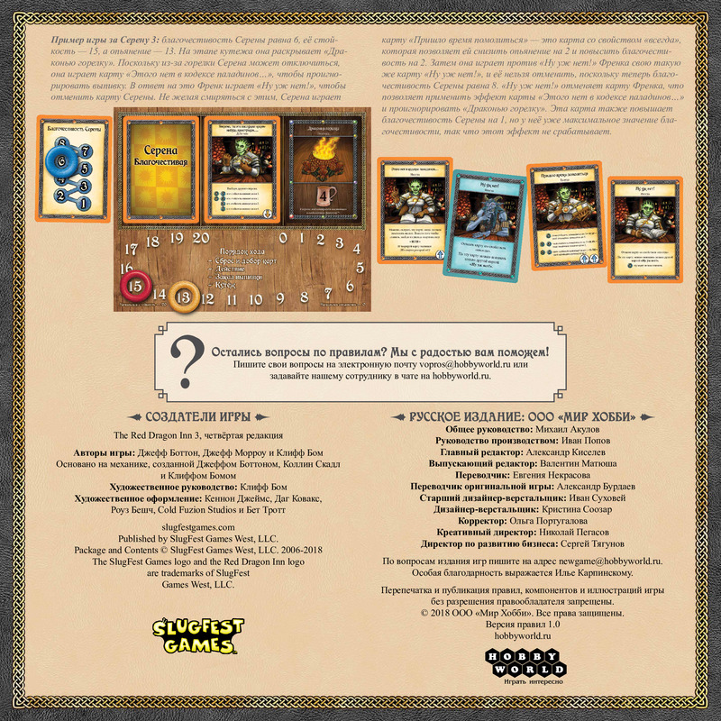 Внимание! Это самостоятельная игра! Но Вы можете смешать её с другими играми серии: «Таверна «Красный Дракон» и «Таверна «Красный Дракон»: Дварф, бард и медовуха», чтобы разнообразить партии и увеличить число игроков!