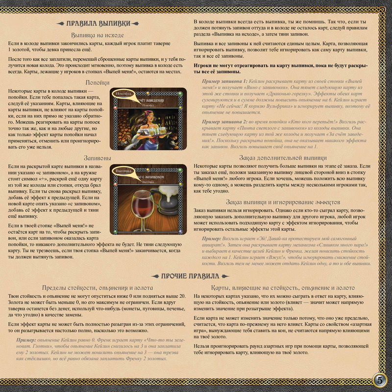 «Таверна Красный Дракон» — душевная застольная игра про неумеренные возлияния и трактирный дебош. Теперь каждый персонаж играет по-своему. Изобретения гномки могут усилить (или испортить) её действия; тролль из-под полы торгует зельями; поведение орчихи переменчиво из-за шкалы благочестия; а ходы пикси зависят от настроения её волка. Одно правило неизменно: побеждает тот, кто останется на ногах и при деньгах.