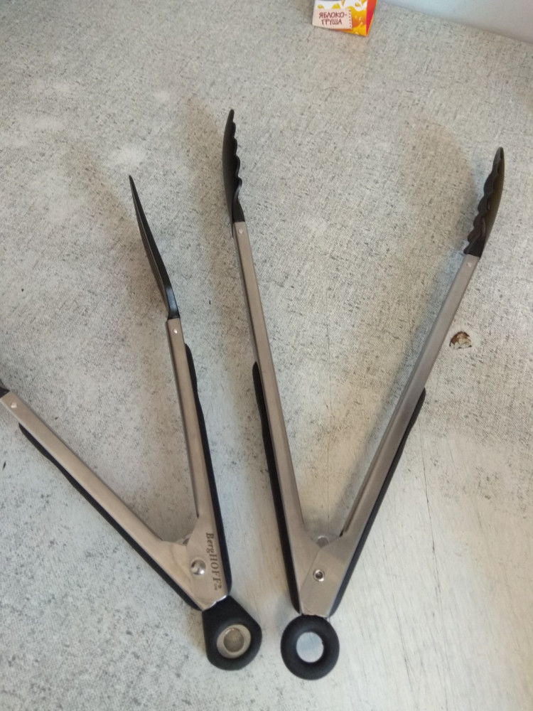 Взяла щипцы себе и сестре, с очень хорошей скидкой. Спасибо Флипу! Качеством довольна, длина 26см как раз удобна, работать ими приятно, захватывают хорошо и не портят внешнего вида продукта. Очень удобная защёлка. Рекомендую к покупке.