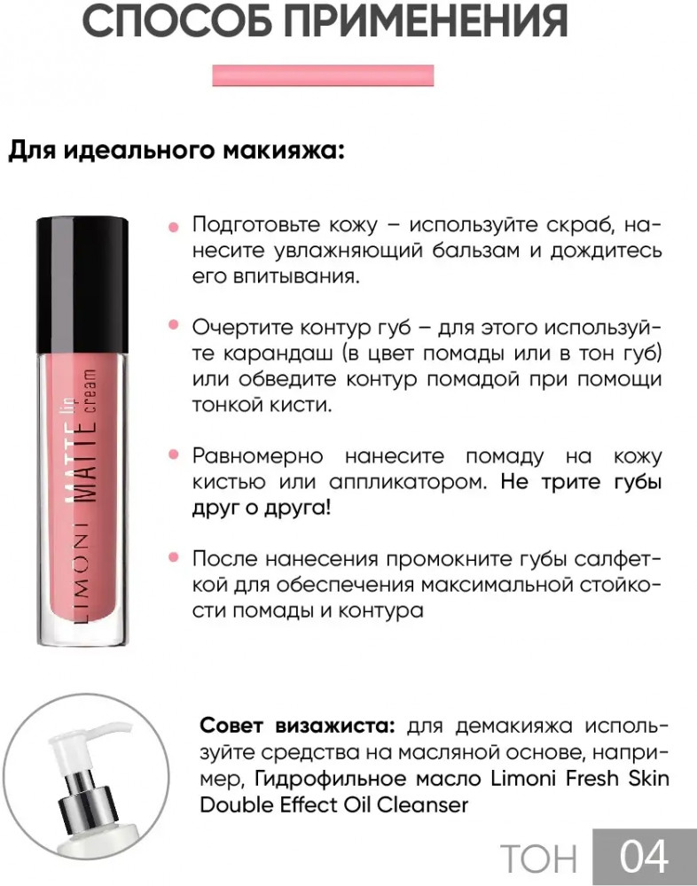 Limoni Помада-крем для губ матовая «Matte Lip Cream», тон 04