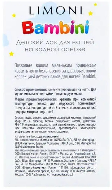 Limoni Лак для ногтей детский, оттенок № 04