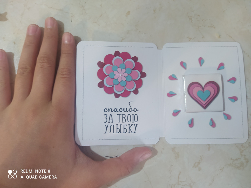 Маленькое и приятное дополнение к основному подарку. Обратите внимание на размер (маленькая открыточка) но цена завышена.