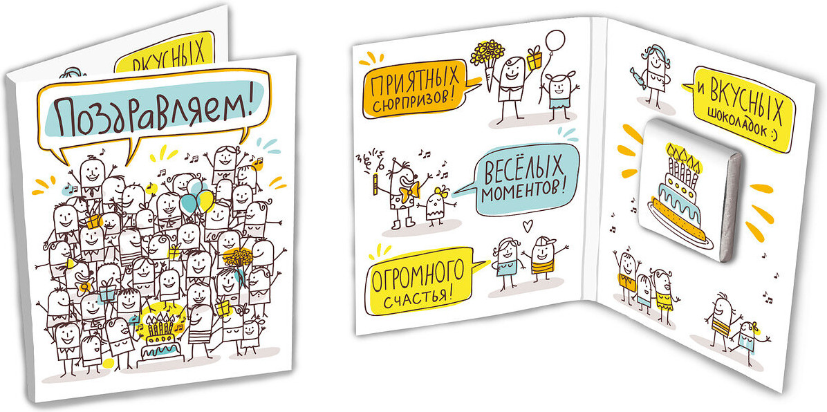 Классная открытка. Небольшая и оригинальная. Внутри надписи и шоколадка)