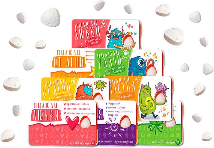ChokoCat Леденцы «Пилюли удачи»В данный момент этот товар отсутствует в продаже. Возможно, у нас найдется аналогичный или похожий товар здесь. Серия: Пилюли Волна удачи и витаминов в каждой пилюле. Со вкусом винограда с витамином С. Пилюли в упаковке с оригинальным дизайном. Внутри 15 леденцов, заряженные позитивом и витаминами. |