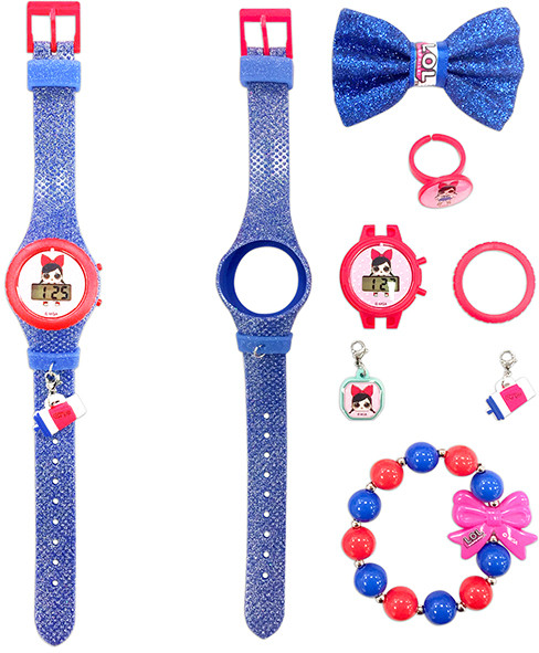 • наручные часы со стильным дизайном ремешка и электронным циферблатом. На часах изображена одна из куколок L.O.L;
