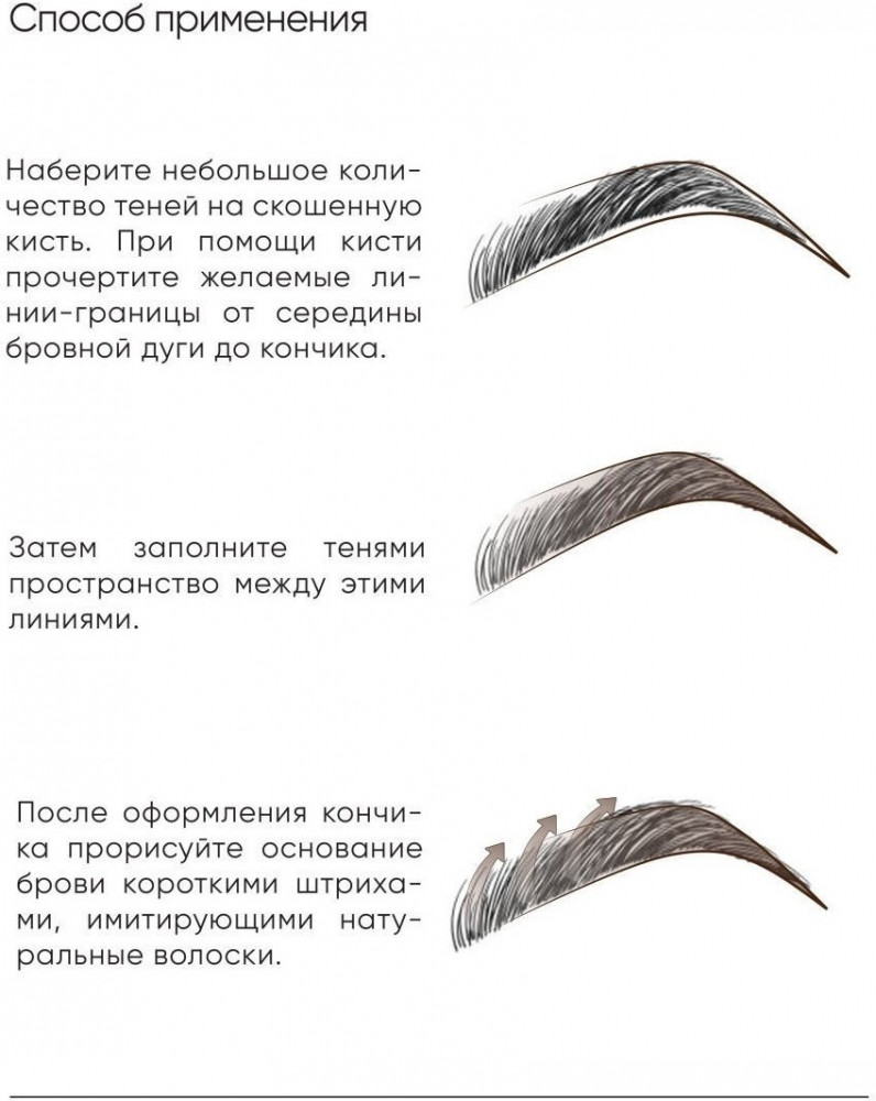 Хорошие тени для бровей за эту цену, не сыпятся. Единственный минус - это тара. Могли бы сделать пластиковый легко открывающийся контейнер.