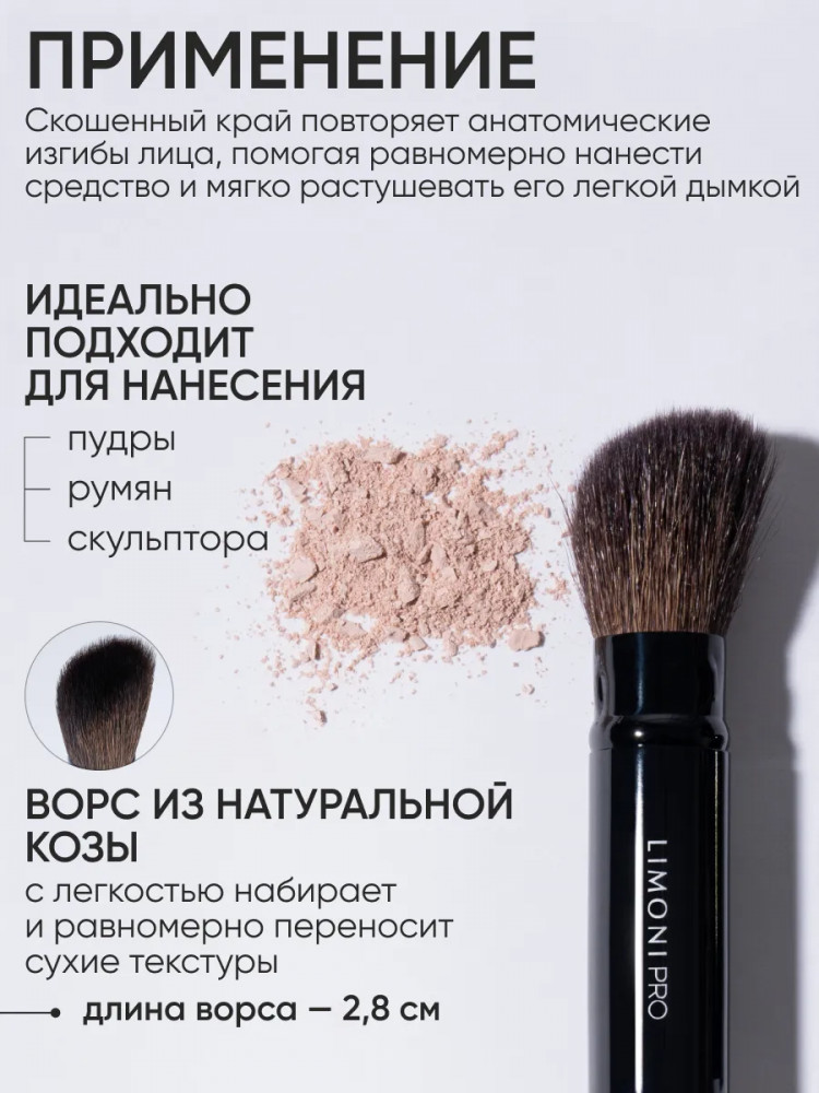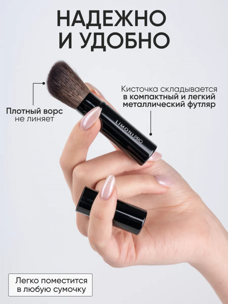 Limoni Кисть выдвижная для пудры и румян со срезанным углом №30-42% +135 мягкий ворс выдвижной механизм компактность футляр