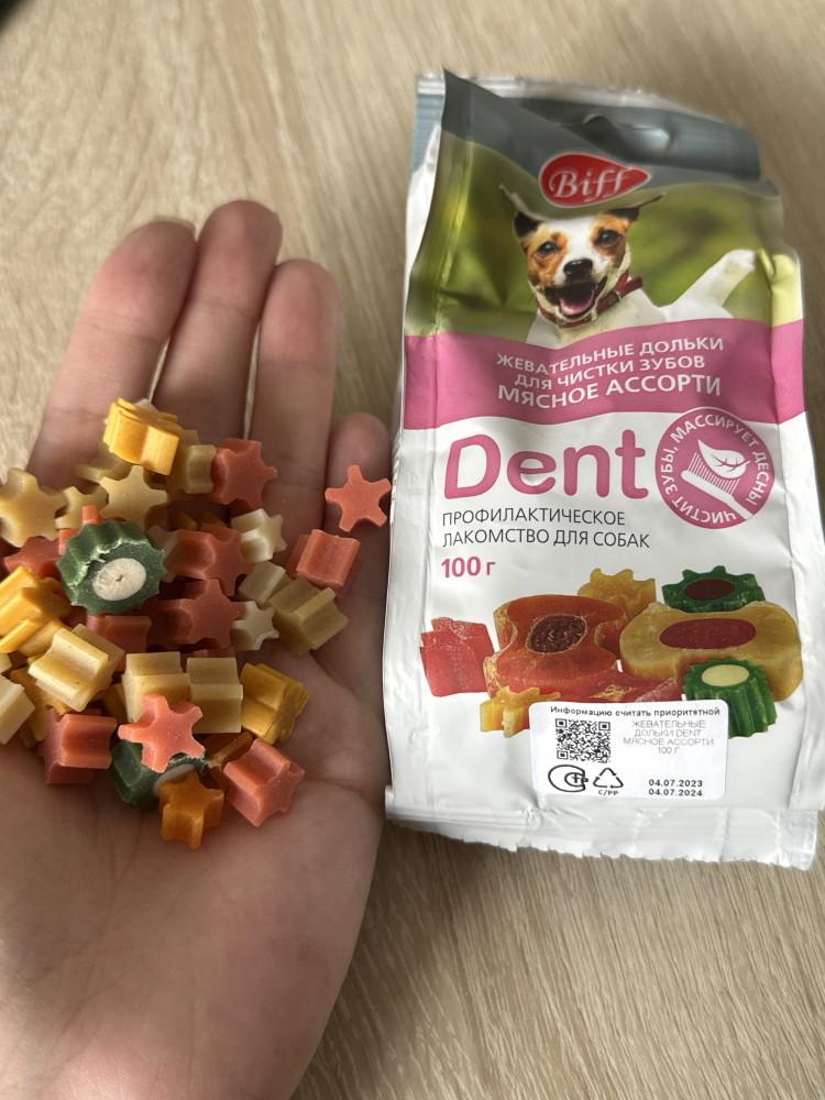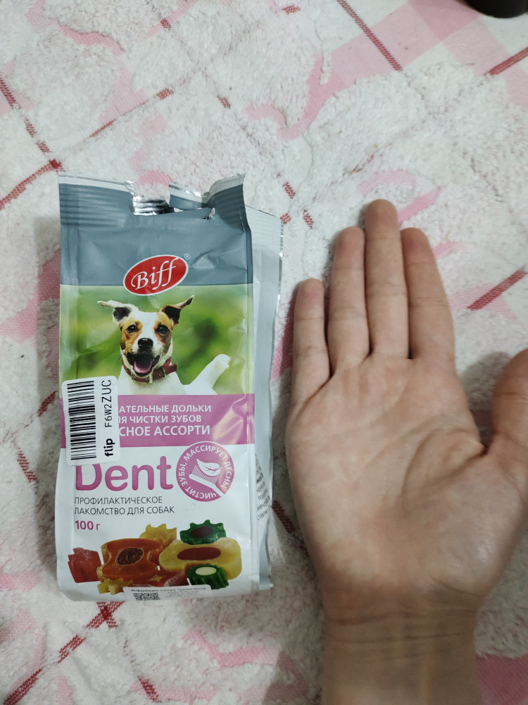 хорошие дольки. думаю будут хорошо очищать зубы. теперь бы заставить собаку их съесть