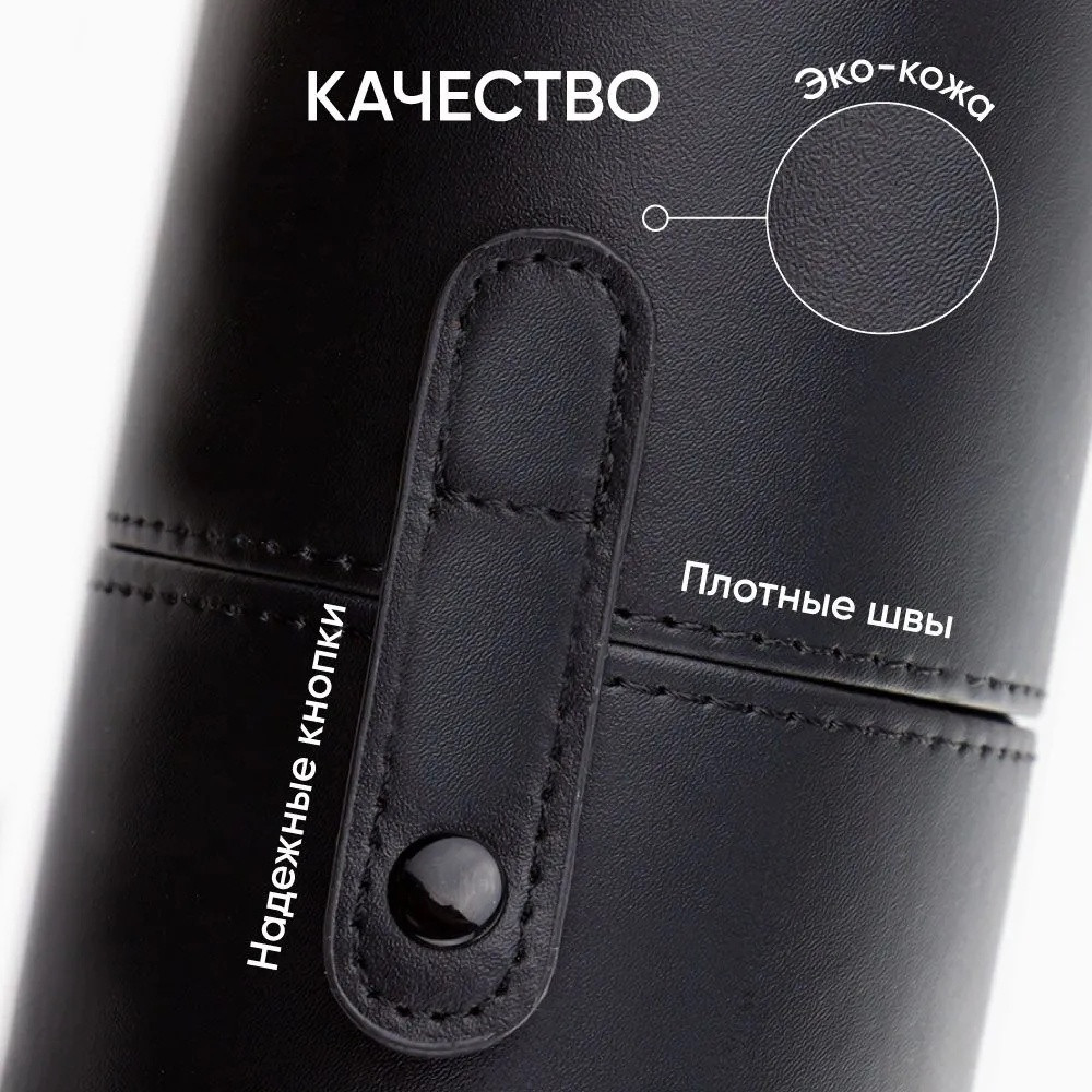 Стильный, кожаный, удобный, как для кистей, так и для для других косметических пр надлежностей