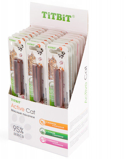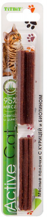TiTBiT Палочки с курицей и биотиномВ данный момент этот товар отсутствует в продаже. Возможно, у нас найдется аналогичный или похожий товар здесь. Серия: Active Cat Условия хранения товара: температурный режим от -10 до +25°С. |
