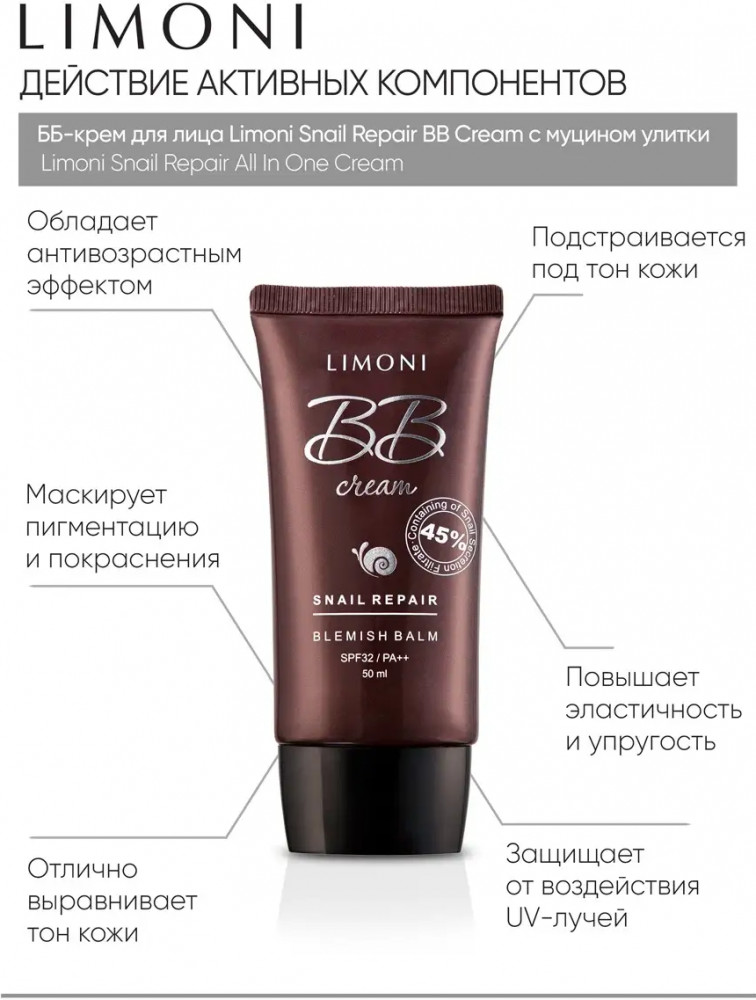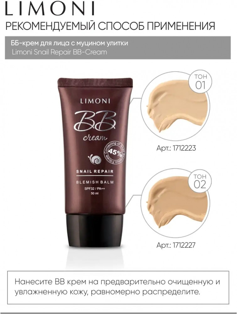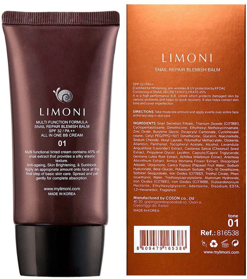 Limoni BB-Крем для лица с экстрактом улитки «Blemish Balm», оттенок №1