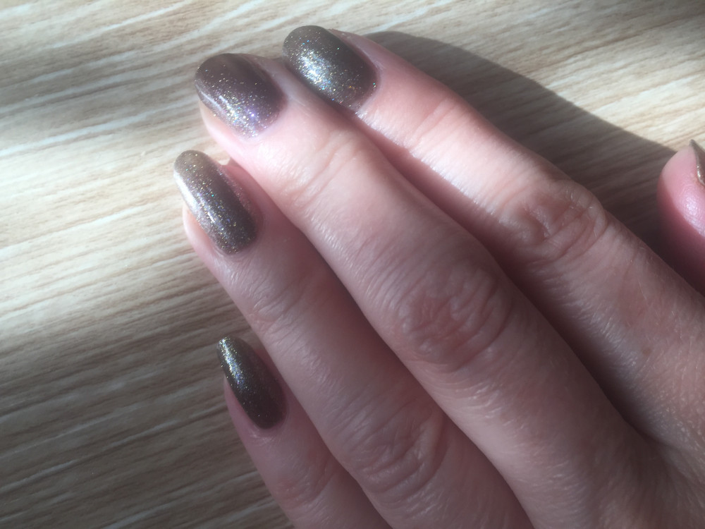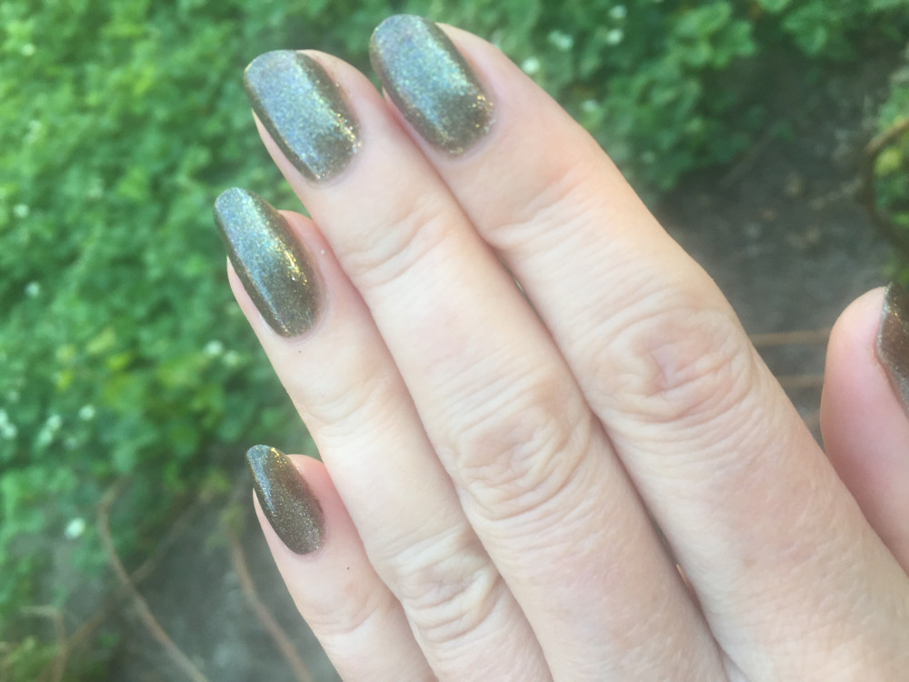 Лак в своей ценовой категории хороший. Жидковат - да, красить в два слоя - да. Но это нормально за такую цену!Держится хорошо. Смотрится шикарно. 744 оттенок - просто космос! Попыталась поймать на камеру переливы, но Камера Асей красоты не передаёт (фокус теряется)