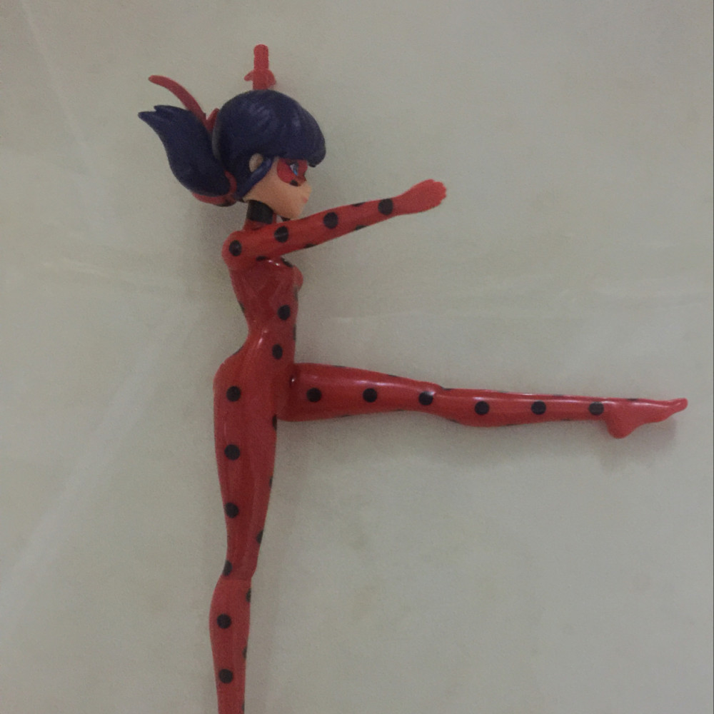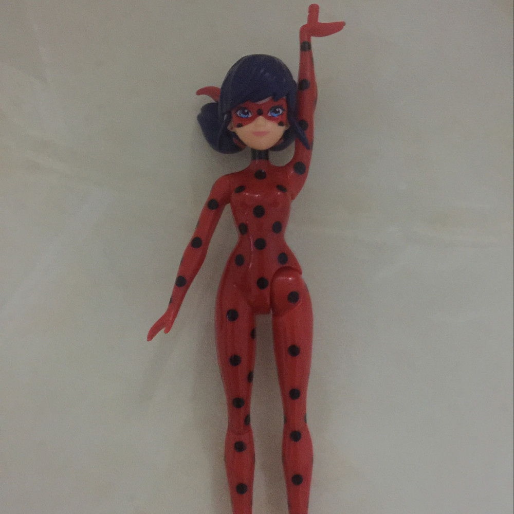 • фигурка Леди Баг выполнена в соответствие с экранной героиней. На ней облегающий красный костюм в черную точку, а также маска. В таком наряде в супергероине сложно узнать простую девочку Маринетт, которая, как и другие дети, учится в школе, дружит, влюбляется и вроде бы ведет обычную, незаурядную жизнь;