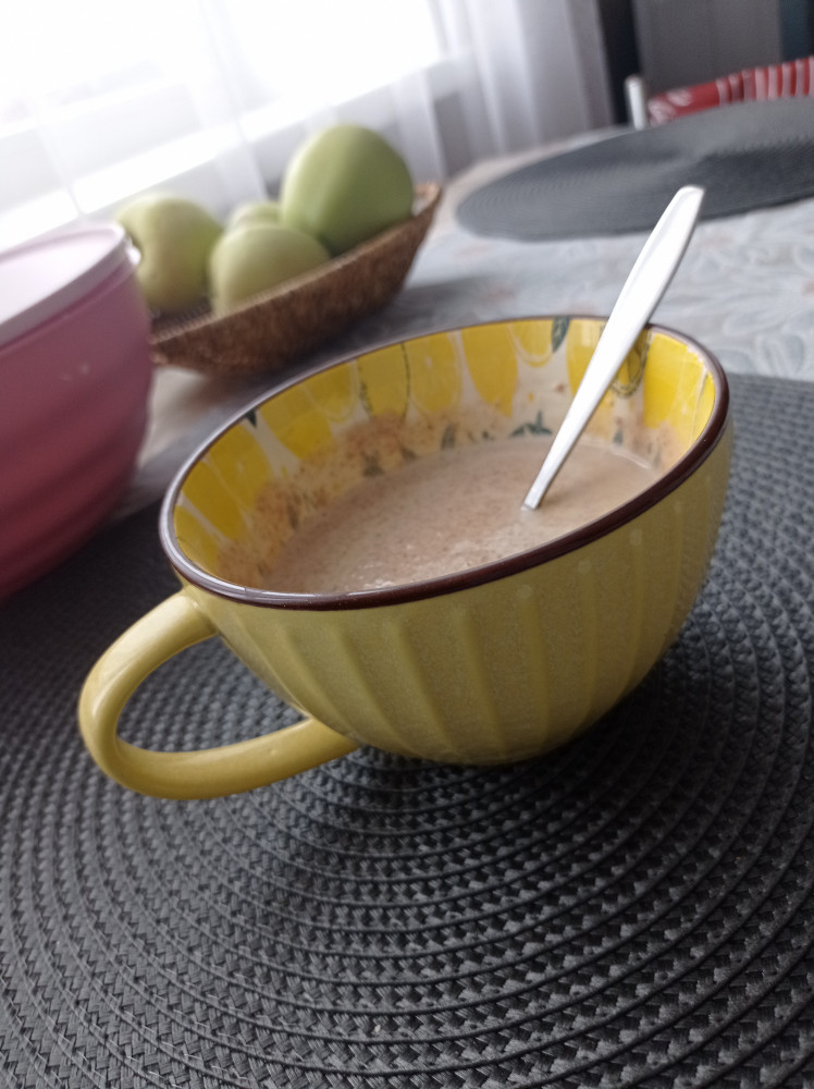 Вкус яблочный, с кислинкой от аскорбиновой кислоты. Загущает напиток, в который добавляется. Кефир 2,5% или ряженка получаются очень густыми. Тем не менее, можно есть ложкой как десерт. Получается в одной порции и полезные бактерии и клетчатка - идеальный вечерний перекус! Думаю попробовать добавлять в компот. Можно использовать 2-3 раза в неделю, чтобы разнообразить и обогатить клетчаткой свой рацион.