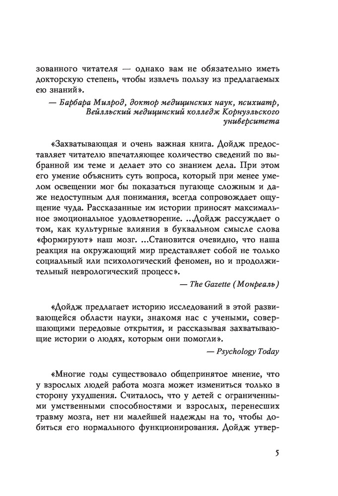Рекомендую к прочтению всем! Книга просто прекрасная. Мы с мужем читали не отрываясь. Ценность книги в том, что это не поверхностный научно-популярый, а изложение результатов множества различных исследований последних лет в области нейронауки. Написано очень талантливо - понятно о сложном. Прочтение книги помогает понять, как работает наш мозг, восхититься его сложностью и понять, наконец, что "всё зависит от нас самих" - это не просто слова, это факт.
